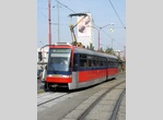 Tatra T6A5 - The most modern type of car in the fleet, 56 of these cars entered service between 1991 and 1997. As with the Tatra T3SU/T3SUCS, they are coupled into two-car sets; the lead car is even-numbered and the trailing car the consecutive, odd, number. All are fitted with dot-matrix destination equipment and most carry all-over advertising liveries. They can mainly be found on routes 5, 9, 11 and have a very angular look.
