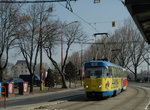 An unusual feature of Bratislava trams is the high percentage of cars carrying overall advertising liveries, particularly the Tatra T6A5 and to a lesser extent the K2 rebuilt types. On the remaining cars, several versions of fleet livery are to be seen. One is a traditional red and cream scheme, very similar to that of Prague's trams, whilst a more modern version consists of a pleasing combination of red, blue and gray. The latter can be found on those K2 rebuilds that don't carry all-over adverts and a handful of T6A5 cars. A few T3SU/T3SUCS cars carry a hybrid red and gray design.