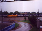 We are now travelling at a good clip. We pass under a Wisconsin Central railroad viaduct, which also carries Chicago's newest commuter rail line. Metra's North Central Service, as it is called, serves the far north suburbs of Chicago and also makes a stop in a remote corner of O'Hare. Shuttle busses connect the Metra station to the airport people mover system.