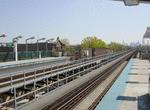 The next stop, California (2800W / 120N), is very similar. We cross yet another railroad viaduct and pass the Henry Horner Homes to our right. Henry Horner ranks with Cabrini-Green and Robert Taylor Homes as one of the more dangerous public housing projects in the city. However, many of Henry Horner's high-rise towers have already been replaced with low-rise housing designed to re-create a more traditional neighborhood atmosphere. Some of these low-rise townhouses are visible just to our right. The United Center, home of the Chicago Bulls and Blackhawks, is a couple blocks to our south.