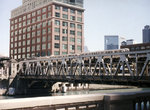 Leaving Clinton, we cross over the C&NW tracks and then, half a block later, cross over the south branch of the Chicago River via the Lake Street Bridge. We are treated to a spectacular view up and down the river as we cross over one of the two downtown drawbridges that carry "L" tracks. Looking off to our left and up the river, we see the gargantuan Merchandise Mart, the largest building in the world when completed in 1931 and designed by the Chicago firm of Graham, Anderson, Probst and White. Even today, only the Pentagon is larger. The Mart contains mostly interior design showrooms, a retail mall, and the CTA headquarters.