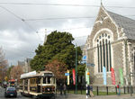 Enter the Christchurch City Council and the Christchurch Tramway. The city has already preserved much of its historic architectural and cultural heritage while moving forward to becoming a modern city. In the late 1980s the idea of reinstalling a heritage tram line gained favor, and the end result was a new 2.5 kilometer circle route linking most of this city's cultural and pastoral attractions. In February 1995, the first new historic tram system since Memphis opened in 1993 began operations, with three historic trams taking to the streets, cheered on by the townsfolk. The route was quite thrifty to build, utilizing much used rail from New Zealand Railways, for instance. A barn was constructed just off Worcester Street near Cathedral Junction, housing 7 vehicles.