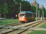 The Shaker system was originally staffed with Peter Witt cars (Peter Witt was a native of Cleveland and the style of trolleycar named for him originated here), of which one is retained for occasional charter use, but for many years the system was home to a large fleet of MU equipped PCCs. These have been retired with purchase of 48 Breda-built LRVs in the 1980s. The Breda cars, which have doors on both sides, have allowed right hand running on the joint trackage, however it is still the case that in this section each station has dual platforms to accommodate both the high level and low level entry cars.