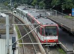 In the summer of 2002, the last 3700/3800-trains were withdrawn from service with the closure of the 6-line's Marienburg extension. With this change the 6-line was relegated to a peak-hour only service, running weekdays only from 7-9 a.m. and 3-7 p.m., with "Ubierring" as its southern terminus. Only some weeks after that the no. 12 saw its last 3100/3200-"double-trains" and the 2000-series and 2100-series took over the services. The loop at the 12-line's southern terminus at "Zollstock" was thereby rendered obsolete owing to the fact that the single-ended cars of the 3100/3200-classes had been withdrawn. Interestingly, the two northern termini of the 12-line ("Niehl" and "Merkenich") still feature loops! However, all 3100-trains were retired leaving a lonely fleet of 3200s on the roster. The no. 6 is now the last line to be operated by 8-axle Duewag-built articulated trains.