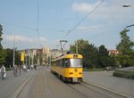 The Cargo Tram motor units and intermediate cars were built 2000/2001 by Schalke, and are owned and operated by DVB. They operate on "Route 58" and although these trams carry no passengers, the electronic tram stop route arrival boards will flash "58" when one of these unique freight trams is approaching.