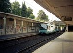 Frankfurt am Main Duewag U2 class trams at Lindenbaum on Line U1. Photo by Jos Straathof, August 2006.