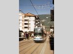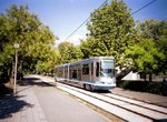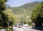 Line A runs from Fontaine La Poya in west Grenoble, with the terminal situated at the base of a mountain. From here to Louis Maisonnat, the line serves several neighborhoods of one-family houses and small businesses, using reservation. At Louis Maisonnat, the line curves left and now serves more built-up communities with multi-story apartment buildings. Some street running is encountered now; the trams cross the River Drac on a short arch bridge and then re-commence street running at Berriat. Line B joins Line A at Saint-Bruno, following which the tracks dive under the railway and emerge at Gares, by the main railway station. Here, the trams now make a U-turn to the right and enter Rue Alsace Lorraine, and from this point it's a pedestrian mall through Centre-Ville--trams and "pietons" only, with plenty of restaurants, sidewalk cafés, boutiques and open-air markets to whet everyone's appetite. Stations are located at Alsace Lorraine and Victor Hugo, and the trams pass historic St. Louis Cathedral before reaching Hubert Dubodout Station. About 200 meters further east, the routes separate and Line A turns south and runs around historic Place Verdun, where there are many fine museums and other cultural attractions. Now Line A will head southward along Avenue Martin Berthelot, in reservation, until it reaches Grand Place, a major transfer center. Here, the line does a complete change of direction, first turning east, south again and west to Maison des Anciens before curving south one last time enroute to Denis Papin. The tram depot is located just beyond Les Granges Station.
