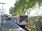 Hamburg's U1 line runs from Nortstedt Mitte to either Ohlstedt or Groshansdorf. The U1 splits apart at Volksdorf. Once the U1 leaves form the Nordstedt Mitte it travels south toward the center city. It does make a stop at Ohlsdorf which is a transfer point for the S1 line and the 110 Airport Express. It is not uncommon to see travelers with suitcase at this station. Hamburg unfortunately does not have a direct rail link to the Airport. The 10 minute bus ride from Ohlsdorf to the Airport is pretty fast and inexpensive. There is also an Airport express bus that goes to the main Hauptbahnhof also. As you continue on the U1 south you reach Kellinghusenstrasse, a transfer point to the U3 line. The U1 continus south to Jungfernstieg which is located at the southern portion of the Binnen Alster or inner Alster. Above this station you will find a picturesque view of the Alster lake as well as many fine shops. If you look across the Binnen Alster you can see several trains crossing the bridge between Damtor and the Hauptbahnhof. If you have the time, a ride on an Alster boat is highly recommended. Not only will you get a great view of the city, but you will get to pass under the railroad bridge as you pass from the Binnen Alster to the Aussen Alster. After Jungfernstieg the U1 travels east toward the Hauptbahnhof and then back up towards the north east past the neighborhood of Wandsbek before it reaches Volksdorf. At Volksdorf the U1 branches off into two lines. Ohlstedt is north and only three stops away, but Groshansdorf is six stops further and runs on a beautiful tree lined right of way. This line, at one point featured double track operation, but has been reduced to a single track operation due to low ridership. It has some two track bypass stations along the way.