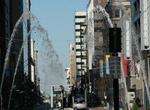 Next station is Main Street Square. Again, southbound and northbound platforms handle boarding. The difference here is that Main Street Square separates the northbound platform, which abuts McKinney, with the southbound platform between Lamar and Dallas. In between is an elaborate fountain, which sprays streams of water as high as the LRT wires, but not when trains pass through. Main Street Square is home to a large shopping district.