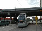 18 sleek new 6-axle, 70% low floor LRVs built by Siemens provide service 19 hours a day. Normal service is with single-car trains, but the LRVs can be coupled in 2-car sets, which were used on Opening Day and on Super Bowl Sunday. Siemens also provided the power generating system for the trains. The car type is nicknamed "Avanto".
