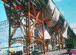 The south end of the station is directly attached to the Broadway Bridge over the Harlem River Ship Canal. In 1960, it was determined that the existing Broadway Bridge (which opened in 1905 as part of the subway extension work), was inadequate and would have to be replaced. A new bridge was designed which doubled roadway capacity and added a third subway track across the river. The new bridge would have a navigable channel 304 feet wide, more than triple the width of the 1905 bridge and would have a vertical clearance of 136 feet. On December 23, 1960, train service was suspended, and the next day the old bridge was cut out and floated down river for scrapping. The new bridge had been preassembled offsite, and was floated and hoisted into position on Christmas Day. Subway trains resumed service on December 26th! However, it was months before the roadway portions were completed and four full years before the bridge was lifted for the first time.