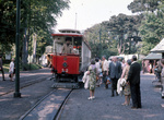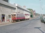 Manx Electric Railway train at the Laxey river crossing, approximately 1970.