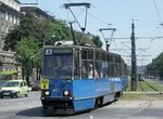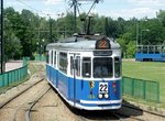 There are two batches of second-hand trams operated. First to be acquired was a batch of MAN GT6 articulated cars, purchased from Nuremburg in Germany. Also purchased with these cars was a batch of trailers, although not all sets are used with a trailer attached. These cars - which date from the early- to mid-1960s - are concetrated in the Nowa Huta area of Krakow, and only penetrate the central area on lines 22 and 72, of which the latter is a temporary route whilst a certain section of trackage is out of service. Trailer operation is only practiced on route 22, with all the other MAN-operated lines in the city being served by single articulated units. Other lines where the MANs may be found are routes 16, 17 and 21, which operate in the Nowa Huta district and stay clear of the central area. Despite their age, they are in excellent condition and should remain in use for several years yet.