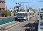 The Expo Line is Los Angeles's newest (as of 2012) light-rail line. It will run between Downtown Los Angeles at 7th/Metro Center and Santa Monica. It joins the Blue Line light rail near Pico station and uses the same tracks to access the subway station at 7th/Metro Center. The phase 1 segment opened on April 28, 2012. There are two more phase 1 stations, at Farmdale and Culver City, yet to open (projected: late June 2012). The present terminal is La Cienega Station. Phase 2 (from Culver City to Santa Monica) is under construction with a target date of completion in 2016. The Expo Line uses Los Angeles' existing fleet of LRV equipment and both the Nippon Sharyo P865/P2020 and Siemens P2000 LRVs may be seen on the line. At present the Expo Line fleet is based at the Blue Line's yard in Long Beach, but a new yard is planned to be built in Santa Monica as part of phase 2.