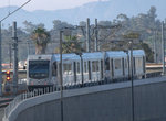 The LRVs used on the Gold Line are 26 of the 52 locally-assembled Siemens P2000, which were built between 1996 and 1999, but did not actually enter service until this year. The cars are numbered 227-250, plus 301 and 302 (these had been considered for some kind of automated operation, but equipment for such was never installed and which will not happen on the Pasadena Gold Line). They are identical to the units in service on the Norwalk-Redondo Beach Green Line. Service is every 10 minutes during peak times, 12 minutes during the day, and 20 minutes at night. Weekend daytime trains operate every 12 minutes apart. Fares are $1.35, with a surcharge for transferring to buses or the Red Line at Union Station.