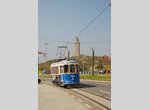 Tranvia de La Coruña ex-Lisbon car no. 100 at the Torre de Hercules Loop. Photo by Thierry Leleu, April 2007.