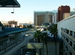 Las Vegas Hilton has the mezzanine below the platform, the only station on the newer north side of the system to have this. An escalator leads down to ground level, and a covered walkway leads to the Hilton entrance, by the Star Trek attraction. (Rumor has it there is a "Star Trek"-wrapped train but it wasn't seen.)