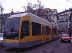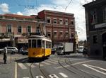 Lisbon tram on the Circuito das Colinas (Tourist Route) at Calçada de S. Francisco. Photo by David Pirmann, October 2001.