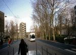 Citadis Low-Floor Type 302 no. 0810 on Line T1 at IUT-Feyssine. Photo by Bernard Chatreau, January 2001.