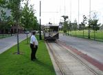 The trolley now heads back to McKinney Avenue and will turn right (through a spring switch) and run a half block to Blackburn, where it will turn left (north), operating along the west side of the street in a separate right-of-way facing southbound traffic. The streetcar will turn left again at Cole Avenue, where it will hug the south curb lane. A left-side stop is made at Newman Street, after which the rails reach Lemmon West. Here, the car will make a wide S-curve and pick up Cole Avenue again. This stretch of Cole is dotted with older homes and is probably the most picturesque portion of the line. At Hall Street, the old original line from 1989 joins up (inbound pull-out cars still use this turn). Finally, at Allen, the line sweeps left in a broad curve and rejoins McKinney (after passing the ubiquitous Starbucks). Double track continues for another mile or so, to St. Paul. Total running time is about 45 minutes.