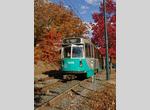 There are 11 stops on the journey to Riverside, about 8 to 10 miles from the subway portal. The line can be scenic as it passes through the woods and residential sections of Brookline and Newton. One of the more interesting stations is the Reservoir stop. A yard is adjacent to the station, which is used to store streetcars as well as some work equipment. Some of this work equipment is actually rebuilt PCC and older streetcars. A non revenue rail link also exists from here to the Cleveland Circle and Boston College lines. (The three branches are close enough to walk between.)