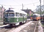 Finally, in 1981, the line was shut down for a 6 month rebuilding, and the Dallas Cars were retired. When the line reopened, a dozen rebuilt wartime cars were assigned to Mattapan, with all of the remaining PCC cars now at Arborway. These cars remained there for about three years, after which they were swapped for picture window cars, in order to beef up the reliability of the very visible Arborway Line which needed trains, and isolate the cantankerous picture windows as singles at Mattapan.