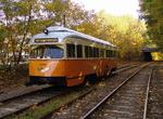 Restored PCC 3268 on the MBTA Mattapan-Ashmont line at Mattapan loop. Photo by Richard Panse, January 2008.