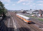 Continuing southward, under the I-93 structure the next stop is Community College station. Like the others it has center platforms, with the tracks on each side. On the west side one can see the Boston Engine Terminal, formerly of the Boston and Maine. Here, MBTA commuter trains, and cars are maintained.