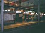 The first two bus lines to serve Ashmont were reroutes of car lines which were holdovers from the days before the Dorchester Extension. The Washington Street line originated at Andrew Station and followed the route of the Meeting House Hill line (17) to Geneva Av. and Bowdoin St, continuing west on Bowdoin to Washington where it turned left and followed that street to Fairmount St. where it terminated. This route was converted to buses shortly after Ashmont opened, and operated from Gallivan Blvd. to Ashmont via Washington St. and Talbot Av. Several months later, the Norfolk St. line was converted. This line ran from Nelson & Norfolk to Dudley Station via Norfolk, Washington and Warren Sts. As converted, the line was extended to Morton St. via Corbett St. and ran west on Morton to Norfolk. From there it followed Norfolk St. and Talbot Av. to Ashmont. The conversion of these two lines benefited both the Elevated and the riding public. The El. got rid of several miles of unneeded duplicate services. The public got route extensions and a quicker trip downtown. The one drawback in these changes was the lack of a facility for buses to load and unload but this was quickly rectified. Late in 1929, an addition to the west side of Ashmont provided a home for the buses. The busway was at the same level as the roof of the original station, and included a passageway atop the shelter leading to stairs down to the subway and streetcar platforms. The bus platform was the same length as the streetcar platforms, and included its own fare control at the end of the passageway. Buses entered from the south end on an elevated ramp and departed from the north end at street level. The platform area was wide enough for buses to pass each other, and the west side was enclosed by a wall of glass.