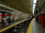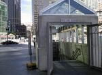 Downtown Crossing (Renamed June 26, 1985, formerly Washington; opened April 4, 1915.) Downtown Crossing has two tracks and two outside platforms which extend from west of Hawley St. to east of Chauncy St.. There is a low wall with columns between the tracks. At the west end, the platforms continue as passageways to the west side of Washington St. leading to stairways up to the Winter platform. The north stairway is divided into two equal flights. The upper flight of the southern stairway matches that of the northern one, but the lower flight is divided into three sections each on a slightly different heading. The Winter Street Concourse which is within fare control, connects the Winter platform to the head of the stairs leading to the center platform at Park St. Under. Prior to being opened to the public in the 1980s, the passageway was used as storage space and for offices, some of which still remain along the south wall. The Summer St. Concourse extends from the Summer platform to just east of Chauncy St. Originally this was entirely a paid area, with a south side fare control at the west end and a north side fare control at the east end. Four stairwells, two for each platform, connect the concourse with the Washington platforms. Each consists of two flights, connected by a semicircular landing. The westerly pair connect at the landings to direct entrances to the sub-basements of Filenes and Jordan Marsh (now Macy's). The west end fare control was part of the Summer station and extended about 40 feet along the concourse. There was a two flight stairway to the corner of Summer and Washington Sts to the west, and a single flight up to a landing to the east. The landing also served an exit stair from Summer, a flight up to the surface, and a flight down to Filenes main basement. Down at platform level, an escalator leads directly from a high exit on the north platform to Hawley St.. Across the way further east, a similar exit leads to an escalator direct to Chauncy St.