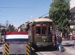 This car is considered the "daddy" of the Trolley Festival. Built by Linke-Hoffman-Busch in 1954, it ran in Hamburg until that city's tram lines were abandoned in 1978. That year, the late Maurice Klebolt purchased 3557 and brought it to San Francisco, parading it around City Hall on a flatbed in the hopes that it could be used to develop a historic streetcar line. Bemused public officials didn't quite know what to do with this "gift", and the car sat for four years before undergoiing full restoration for the 1983 Trolley Festival. It operated in all five Festivals, and occasionally thereafter until1992. It is now in storage, needing a fresh restoration.