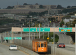 After SF State, 19th Avenue makes a bit of a turn and highway 1 continues on a different street. At this point, the tracks change to street running. The M line then passes through the area known as Ocean View, a funny name for a place with a better view of the freeway than any body of water. The M line serves Ocean View on Randolph Street and Broad Street before reaching San Jose Avenue. The tracks follow San Jose back to Balboa Park, coming in from the opposite direction as the J line. While J & K trains make their Balboa Park stop next to the BART station at the Curtis E. Green Light Rail Center, M trains stop across the street in front of Geneva Yard. M trains turn around by pulling through the yard.