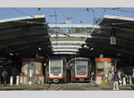 Opened in 1980, the MUNI Metro is conceptually similar to the Boston and Philadelphia subway-surface streetcar systems where surface lines funnel into a single tunnel to serve the downtown core. Unlike those two systems, which have loops at the ends, the MUNI was designed with a stub-end terminal and high level platforms, rendering the current fleet of PCC cars unusable. A new LRV design was required, and both Boston and San Francisco purchased these new LRV cars from Boeing. Promised for delivery in 1976 but not received until 1982 (and still with flaws), the fleets have not aged well in either San Francisco or Boston. Boston even went so far as to refuse part of its order, which San Francisco then purchased. Service problems came to a head in the summer of 1998 as MUNI attempted a simultaneous rollout of a proof-of-payment fare system, a new ATC signaling and control system, a new extension of the Metro to the Caltrain Terminal, and integration of the new but incompatible Breda LRV-2 cars. The Breda cars, which cannot MU with the Boeings, can be found on all five lines, with the N line being exclusively Breda (since August 1998). The Boeing have since been entirely replaced by the Bredas. Standard operating procedure for many years had been to MU cars on the K, L, and M for their runs thru the Metro and Twin Peaks Tunnel, coupling/decoupling at West Portal. This procedure has not been used much since the implementation of ATC.