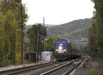 Metro North-Hudson Line train viewed from the Bear Mountain Bridge. Photo by Richard Panse, October 2010.