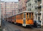 On weekday mornings, an impressive 5-car train runs as a school tripper on the Limbiate line, bringing a huge load of "Ragazzi" into Affori terminal. This train is comprised of one of the remaining "Désio" or "Reggio Emilia" class interurban motors and the last four serviceable trailers. These motors were built in 1926 and 1928, respectively. "Désio" 46 and "Reggio" 85, 90 and 92 are assigned to Deposito Varedo, which serves Limbiate, with car 90 equipped as a snow plow. At Désio, cars 47, 48 and 89 are operable, but not regularly used. Car 44 serves as a shunter at Teodosio Workshops, which adjoins Deposito Leoncavallo on the urban network. Cars 45 and 87 also are still in existence, but are stripped.