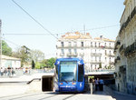 Montpellier Citadis tram at Rives du Lez on Line 1. Photo by Thierry Leleu, April 2007.