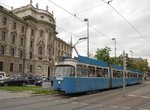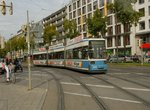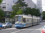 MVG tram no. 2150 at Maximillianstrasse-Schauspielhaus on rt. 19. Photo by David Pirmann, September 2002.