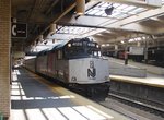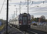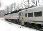 A special movement of a diesel hauling two NJT coaches passes an inbound EMU train to New York at Princeton Junction. Photo by Lee Winson, September 2009.