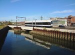 At the riverfront, the line turns northward along brand new trackage and snakes its way past the former Colgate properties, Exchange Place, and into Harborside, Harsimus Cove, and Newport. Several bridges carry the line over streets and parking lot access in the Newport Mall and office complex area, finally rising to a viaduct across Newport Parkway, several ground-level parking lots, and 18th Street, turning eastward to reach a station on the south side of the Hoboken Terminal property.