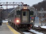New Jersey Transit Arrow III EMU train on the Morris & Essex Line at Denville. Photo by Chris Reidy, April 2008.