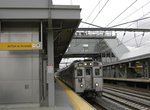 After departing Rahway and passing the crossunder for the North Jersey Coast line, we pass two abandoned stations, Colonia and Iselin. Next station stop is at Metropark with 4 tracks, 2 side platforms. Metropark is one of NJ Transit (and Amtrak's) most utilized stations. The station is on an embankment, with Wood Av. to the south and the Garden State Parkway to the north. A center exit leads from the northbound platform to an elevator and stairs, which lead to a small station house at ground level, which has benches, a ticket booth, and a small Dunkin' Donuts inside. A crossunder is from the southbound track, and comes up directly into the station house. Just across the street from the station house, there are large 5 and 7 story parking garages with long-term and hourly spots. The station opened in 1971 as an Amtrak only station and was soon joined in service by NJT's predecessors. A renovation is planned to expand the station from 850 foot platforms to 1050 feet eastbound and 1135 feet westbound and will for the first time have a pedestrian connection to NJ route 27 (which is on the west side of the Trenton-bound platform). Renovation work should be complete in 2010. A train to bus connection is available here.