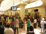 A new waiting room has been opened at New York-Penn Station for NJ Transit riders, and the old waiting room has been converted to an Amtrak-only area. The waiting room is usually very crowded and there is no place to sit down. Once the train arrives, the track is posted on a small television screen and everybody makes a mad rush to the platform. The ticketing area has a large train destination board showing Amtrak and NJ Transit departures.
