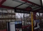We cross the Raritan River on a massive concrete arch bridge and arrive at New Brunswick. This station is on a viaduct through the city and has enclosed platform waiting rooms on both platforms. The main station building is two levels, on the northbound side. A view of the many office buildings and Rutgers University campus buildings is available from the platforms.