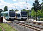 The River Line uses Stadler GTW 2/6 DMU (diesel multiple unit) cars. The nomenclature 2/6 indicates that two of the six axles are powered. The vehicle is more than 65% low floor. Similar GTW units are in use in Italy, the Netherlands, Austria, Greece, Slovakia, Germany and Switzerland. The River Line cars are numbered 3501-3520 and are often operated in two-car trainsets.