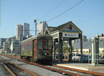In the summer of 1988 the lonely St. Charles Line got some company again when the first new streetcar route in New Orleans since the mid 1920's opened for service. Unlike the St. Charles line, the new Riverfront line is more of a tourist route running along the Mississippi River, connecting the Convention Center and Riverwalk shopping area to the French Quarter and ending at Esplanade Ave. (French Market). The Riverfront line runs entirely in its own right of way, and its stations consist of ground level island platforms with canopies between the tracks.