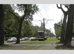 The St. Charles line is a 13 mile journey through history, passing in front of historic mansions and plantation homes in the Garden District, while riding vintage streetcars built in 1924 by Perley Thomas. These vintage units are in the 900 series, and green in color. The line begins at the intersection of Claiborne and Carrollton Avenues where the tracks just end in a stub at Claiborne Avenue. They travel on the "neutral ground" in the center of Carrollton Avenue towards the Mississippi River. ("Neutral ground" is what New Orleanians call a median, basically a large grassy landscaped area down the middle of many roads in New Orleans). The Carrollton Shop is also off of the route as it runs along Carrollton Ave. This is the shop that services the streetcars, and built the replica streetcars for New Orleans' other routes.