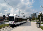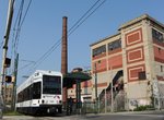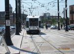 Newark Light Rail LRV #102 at the Lackawanna Broad Street Station on the first day of service. Photo by Frank Pfuhler, July 17, 2006.