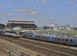 Journal Square. Approaching Journal Square station, trains first pass the site of a small yard between the service tracks just west of the station. Crossovers allow any train two run on any of the four tracks and two island platforms at Journal Square. The station has a high ceiling in sections and a mezzanine level connecting the platforms. On the upper level are shops and bus lanes. The PATH Command Center is at the west end of the westbound island platform. From here, all trains are monitored. Under normal operations, the "local" tracks are used by Newark/WTC trains while the inside "express" are used by Journal Sq./33rd St. trains. The Journal Square station was completely rebuilt when the PATH took over for the Hudson & Manhattan as part of the World Trade Center construction deal in the late 1960's-early 1970s. Leaving the station to the east, we are in a deep cut trench, sharing right of way with a Conrail Shared Assets freight track. Another small yard is to the south, and then we approach the tunnel portal.