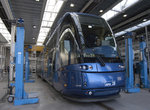 16 double-end Translohr vehicles were built by Lohr. These vehicles, classfied as model STE-3 by Lohr, are 25m long, four-axle units with two articulation joints. They are equipped for pantograph operation. A unique feature is that the cars run on battery power around the Prato della Valle park in the Centro Storico, between Santo and Cavalletto Stations, because the city insisted that there were to be no overhead wires in the vicinity of this historic park.