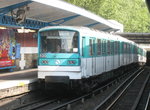 Line 2 makes a loop across the north end of Paris between Charles de Gaulle-Étoile and Nation (with the Line 6 providing the southern half of the loop). There are a number of stations on elevated structure: Barbès-Rochechouart, La Chapelle, Stalingrad, and Jaurès, which provide nice views of the trains approacing along the elevated line. The short distance between Stalingrad and Jaurès provides some nice views from street level. In addition, the station at Porte Dauphine still has a Hector Guimard art nouveau kiosk at street level (although it is apparently not native to that station). New rolling stock (the MP01) has been deployed, which is very similar to the MP89 open, articulated design. Line 2 serves the Montmartre district around Blanche, Pigalle, and Anvers stations. The famous Moulin Rouge is located at Blanche.